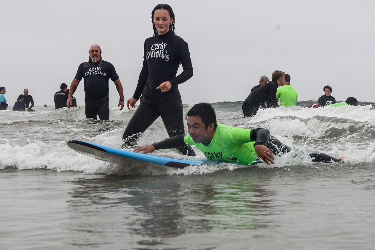 Every year Corky Carroll’s Surf School hosts the SAC Surf-O-Rama sponsored by Edison High School Special Abilities Cluster. What an awesome day for everyone to come together and enjoy a day at the beach.
